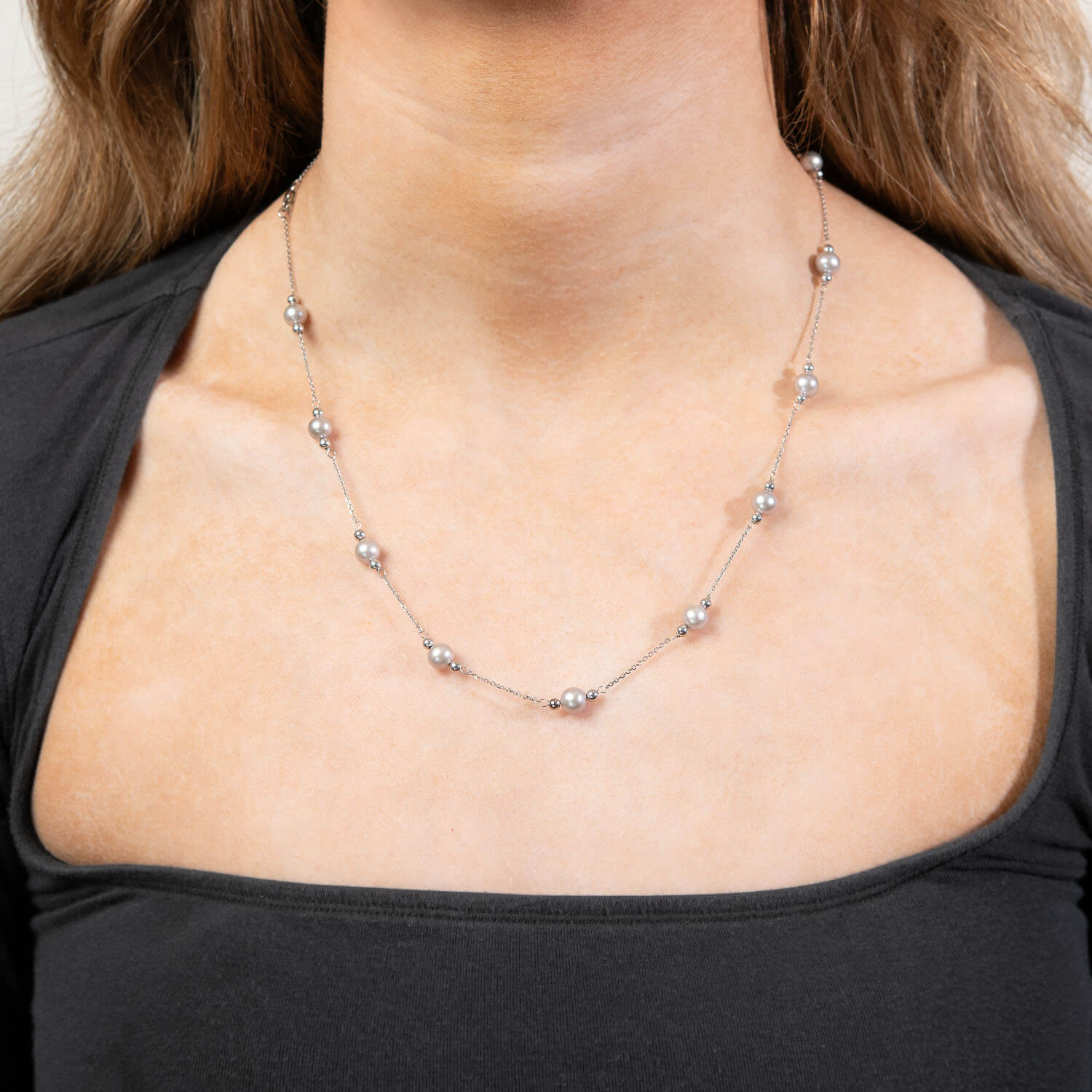 Measurements: The entire length of the chain measures approximately 19 3/4" long. Each pearl has a diameter of 6.15mm.