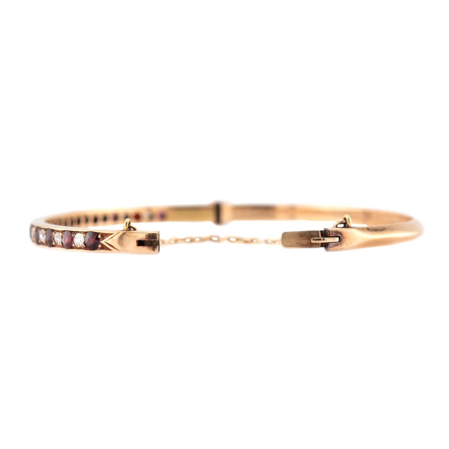 Victorian 14k Diamond and Garnet Bangle